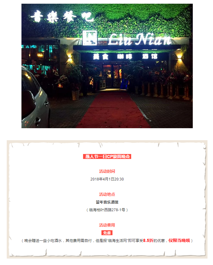 地点:留年音乐酒馆,临海柏叶西路278-1号