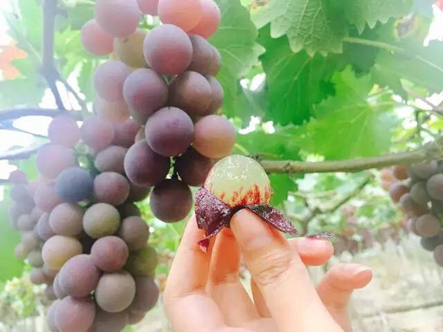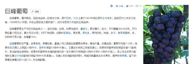 潘大爷说他们家的葡萄品种属于巨峰葡萄,为此,孤陋寡闻的小编还特地去百度了一下“什么是巨峰葡萄”。