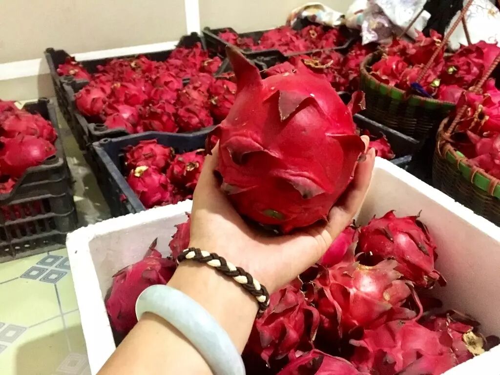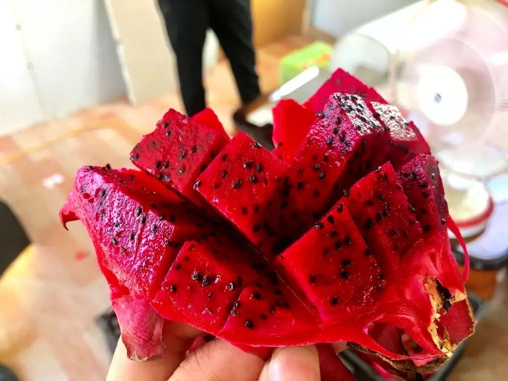 你在挑选火龙果的时候最好挑选最红的那种,因为那个是火龙果最成熟最新鲜的时候,也最甜。