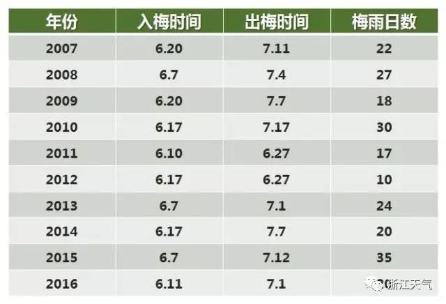 这是浙江省近10年梅雨季时间,也不知道今年梅雨季会持续多久……