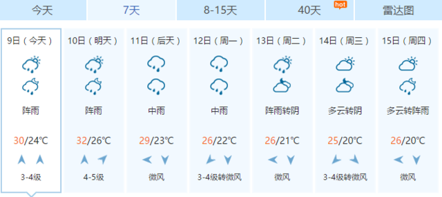 14-15日全省以多云为主,局部有阵雨;
