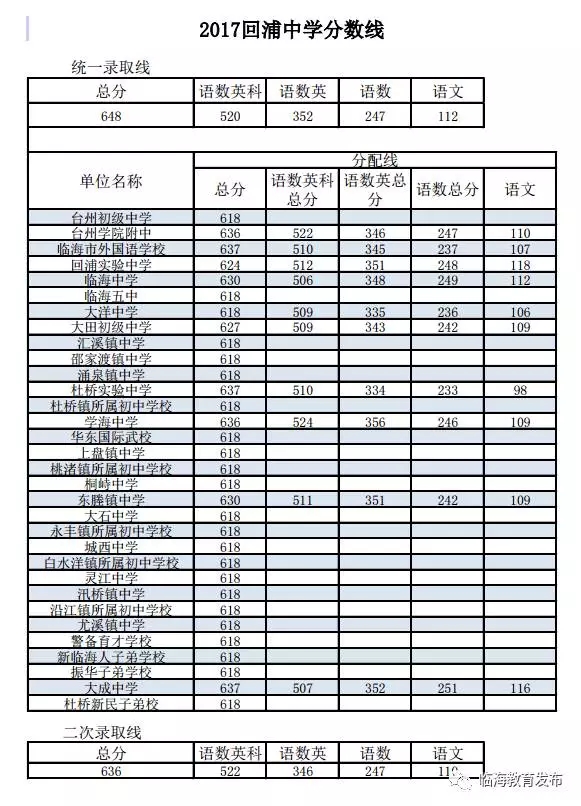 2017年临海市省级重点高中