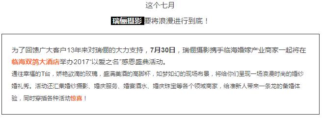 仅限瑞俪摄影VIP客户凭邀请函门票参加