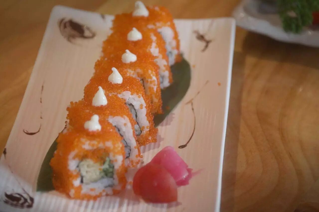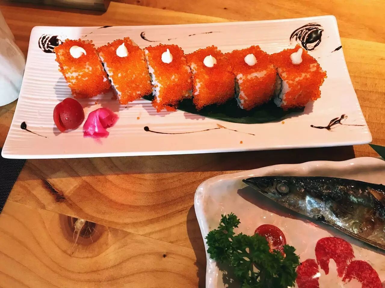 另外,老板还额外赠送一份刺身拼花、一杯橙汁。