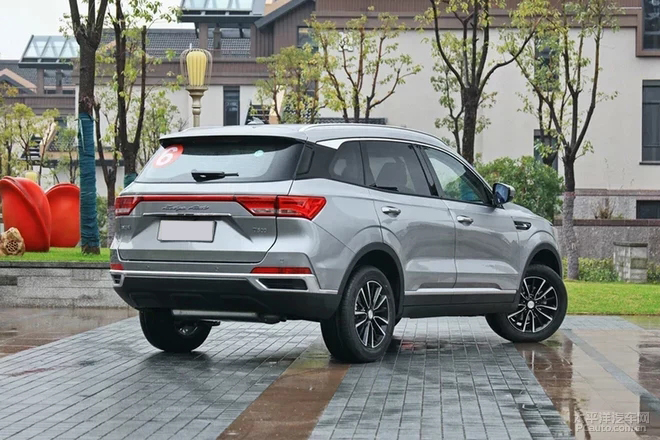 众泰T500前脸六边形进气格栅与LED前大灯组直接相连,前杠由一条凹凸有致的辐条点缀,而日行灯则被其压在下方。同时,新车的保险杠也有较强的设计感,其雾灯上方还采用了类似回纹的设计。在车身尺寸方面,众泰T500长宽高分别4632/1850/1695mm,轴距为2700mm。