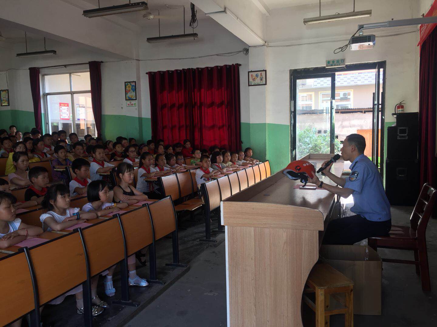 下午3时许,一到五年级学生集结在学校大型会议室。永丰交警中队指导员兼永丰镇中心小学法制副校长卓佳秋开始授课。