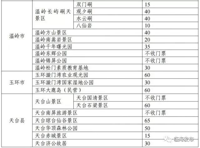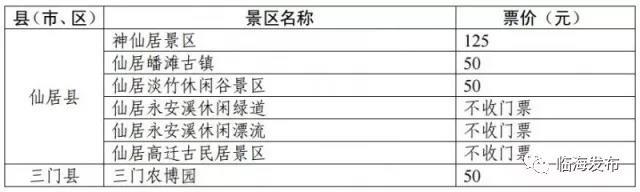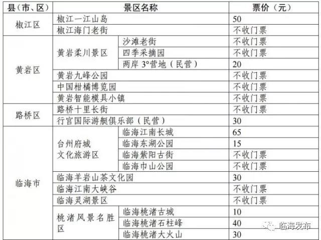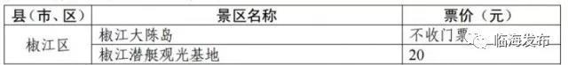 (注:表格最右边票价,是原本的价格哈~台州人游台州是免费哒)