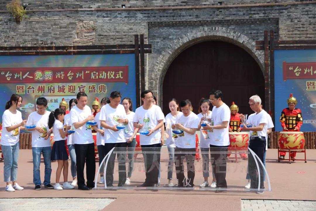 活动为49家免费游景区授牌,为“台州人免费游台州”活动团队授旗。与会领导和市民代表一起用台州这座山海水城的江河之水,共同开启免费游台州之旅。