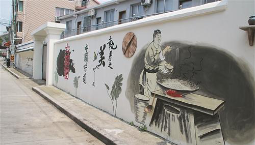位于河东路的墙绘展示大排面传统制作历史