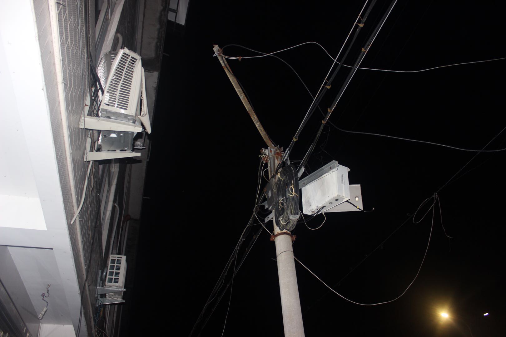 2018年8月4日凌晨1点许,台州临海永丰交警中队接到群众报警称:在104国道仙人村有辆大货车拉断了国道上监控光缆,家里的空调外机也被拉飞了,自家楼下停放的轿车也被砸了一个洞。