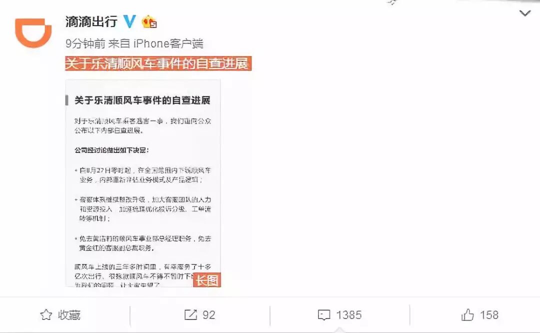 对于乐清顺风车乘客遇害一事,我们谨向公众公布以下内部自查进展。