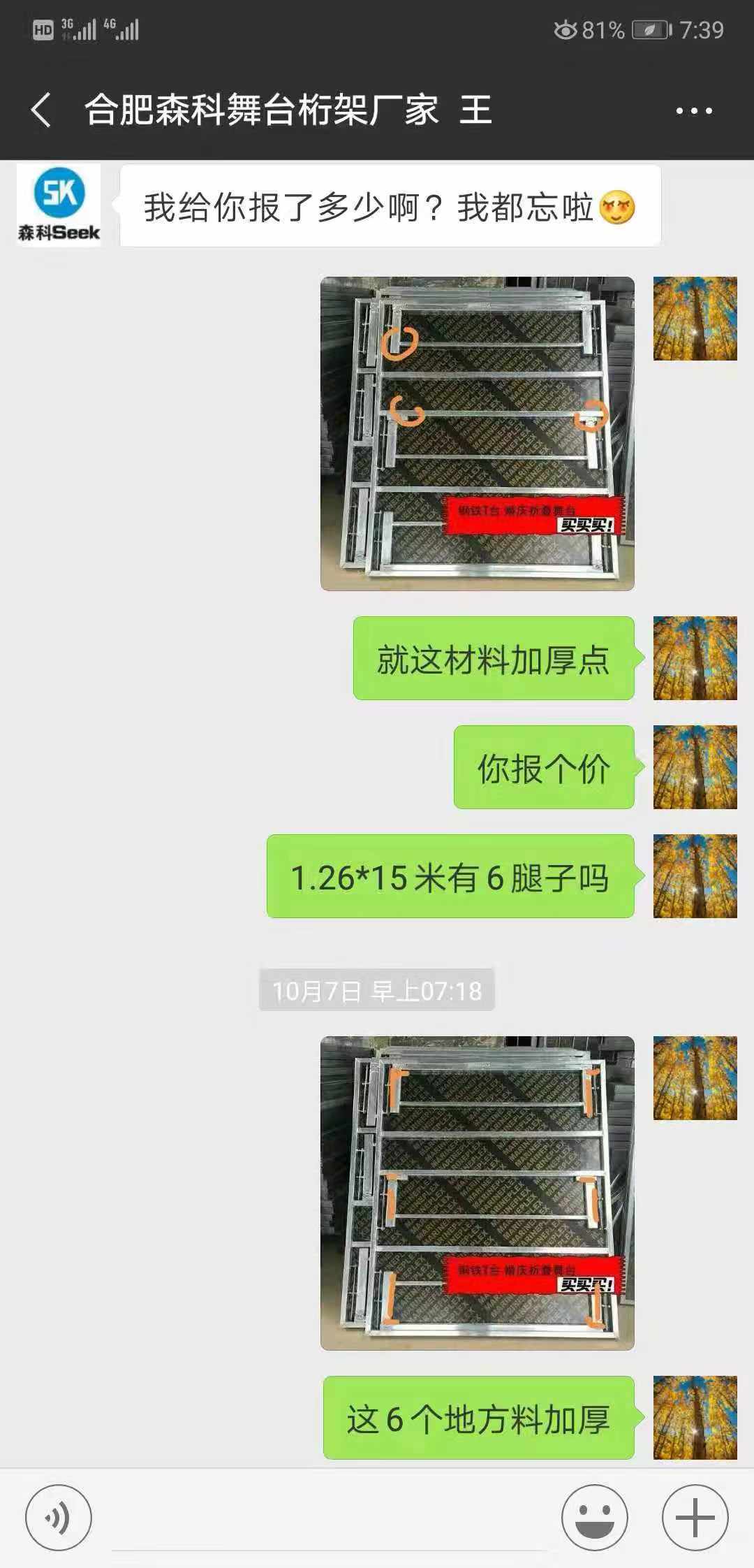 半个多月前,杨先生向”合肥森科金属制品有限公司“厂家定制了一批舞台桁架,为了让舞台桁架更加牢固,杨先生向厂家提出需要加料,并标注加料的地方,并于厂家谈好加料后的价格!(注:原价245元/块,加料以后310元/块)