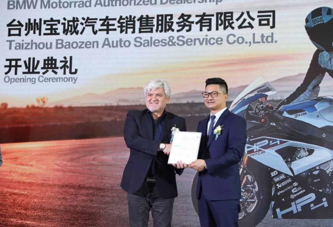 宝马摩托车(中国)总监Mr.Ekrem Sak致辞:我们相信台州宝诚凭借对摩托车和BMW的专业和热情,必将不断壮大本地宝马摩托车骑手队伍。台州宝诚现在能够为骑手们提供包括整车销售、服务、零件和骑行服装和装备在内的专业服务。