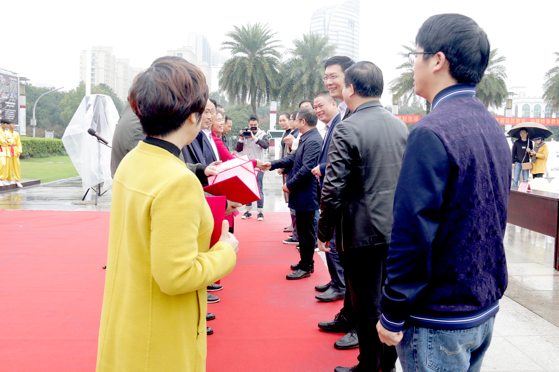各镇(街道)社区学校领导、临海市首届“十佳农民大学生”、”优秀农民大学生”代表、黄沙狮子表演队、张秀娟剪纸名师工作室代表、富康社区健身队、金通职业培训学校代表和广大市民朋友等到到场参加开幕仪式!