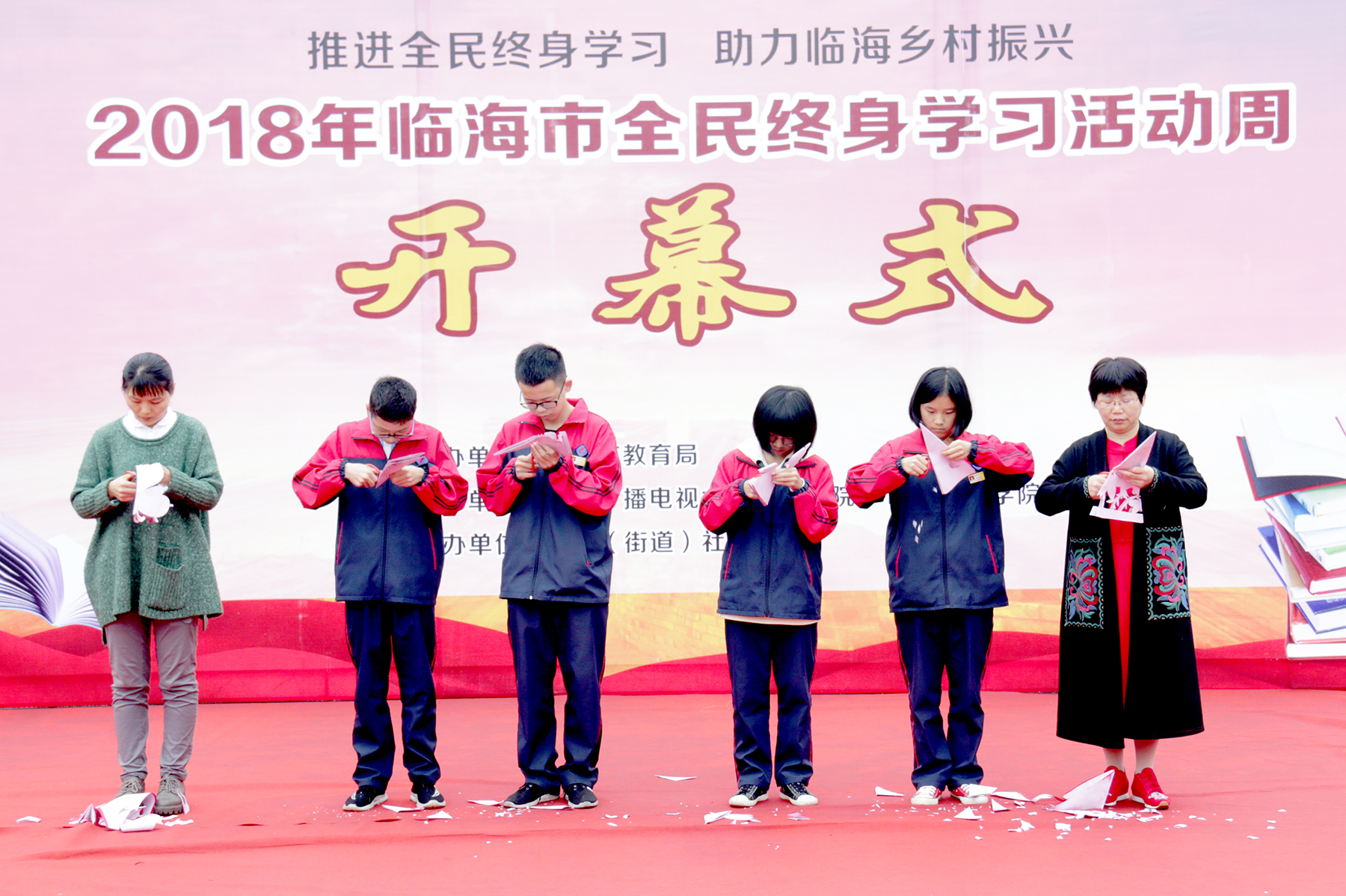 本次开幕式由临海市教育局主办,浙江广播电视大学临海学院、临海社区学院承办,各镇(街道)社区学校协办。
