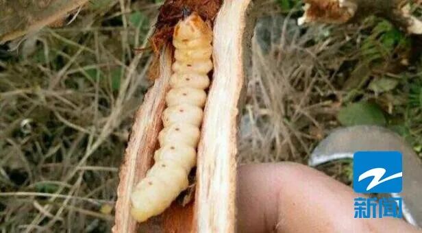 台州临海大田双山村村民蔡师傅:5棵树破坏了,里面那个虫子,我估计应该是50只以上。当时我在按照那个市场价格来说,那卖100块也有50块也有,按照100块(一只),那就要5000块钱了。