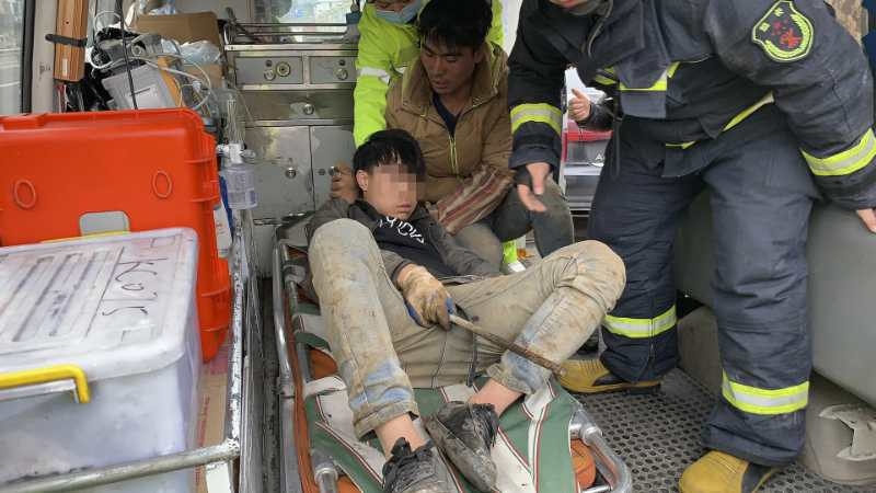 在切割过程中,由一名消防员用手扶住钢筋的下端,尽量减少救援过程中钢筋的移动,另一名消防员手持磨光机小心翼翼地进行切割。为了防止切割过程中产生的热量对人体造成二次伤害,消防员在距离人体约50公分处进行切割,并由一名消防员全程用矿泉水浇钢筋进行降温。一时间现场火花四溅,大约用了1分钟,钢筋被切断。消防人员护送该民工上救护车,去医院开展进一步治疗。整个救援过程大概持续6分钟。