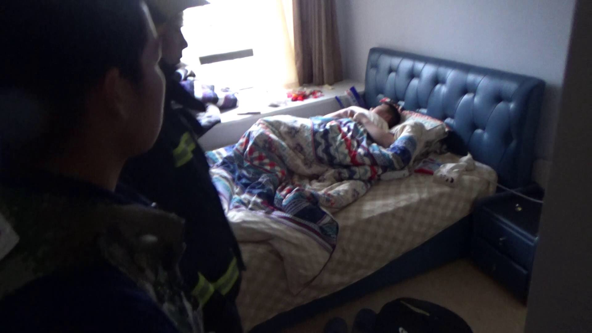 消防员和两名家长赶紧进屋找孩子,所幸孩子只是在家睡觉,小孩母亲见到小孩无恙后,连忙致谢。