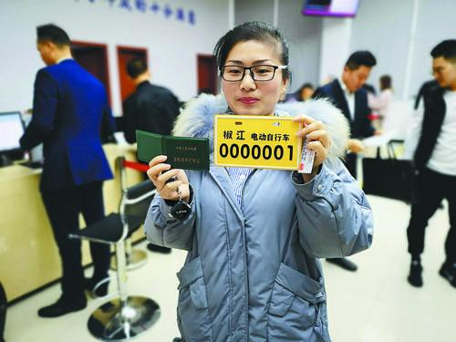 “前不久听说马上要实施电动车新政了,在新标准下的电动车将更安全,管理也更规范,所以我赶忙换了辆新车。”林智笑得合不拢嘴,“趁着今天有空和朋友一起来办理,竟然就领到了第一块新车牌,太幸运了。”