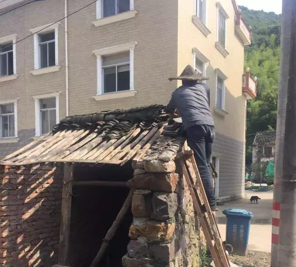 新兴村为后期庭院设计,组织工人冒雨拆出足够空间。