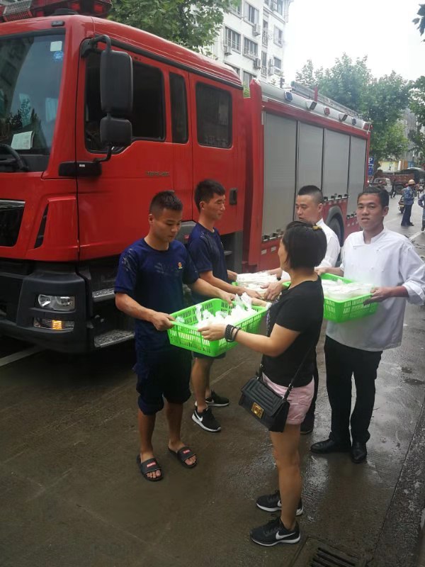 至13日傍晚,消防队伍的人员、机器不停歇,连日连夜抽水,已完成对市区部分住宅小区、单位的排涝清淤工作,热心市民给整晚排涝、冲洗街道的消防指战员送来早餐,同时对永丰镇镇村民和台州医院等单位进行送水。