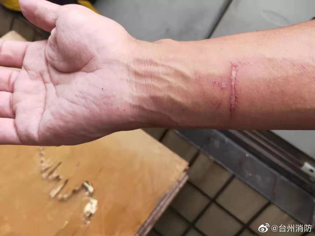临海消防宣传小姐姐追着几个回大队休息片刻的指战员,硬是拍了几张照片。他们腼腆地说:这些,哪里算得上伤口啊!