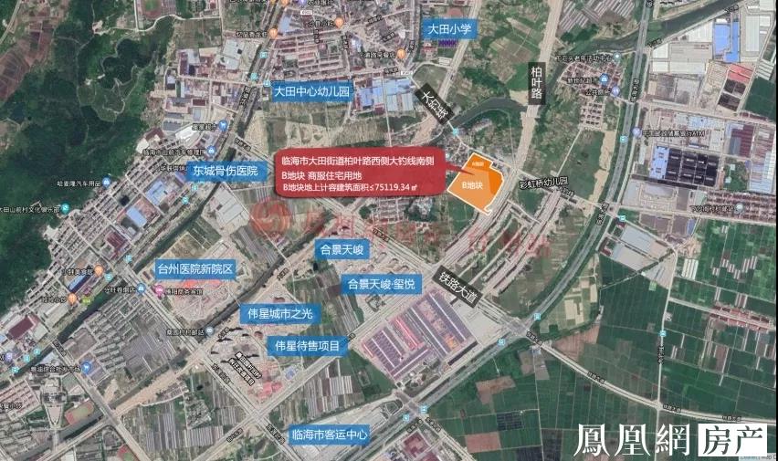 地块位于临海市大田街道柏叶路西侧、大钓线南侧,紧邻临海热门置业板块——大洋板块,附近有大田小学、大田中心幼儿园、彩虹桥幼儿园、临海东城骨伤医院、临海客运总站、台州医院新院区、伟星·金色朝阳、合景天峻·玺悦、伟星城市之光、祥生·未来悦等,未来发展潜力不容小觑。