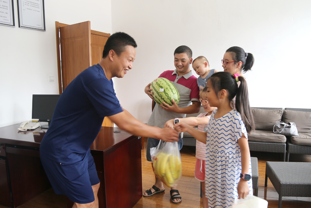 “消防员叔叔,我来看你们了!看,这是我为你们画的一幅画,画的题目是《希望之舟》。”8月15日,临海消防救援大队迎来了一家四口,一对夫妇带着他们的女儿、儿子,为消防指战员送来了水果、饮料等慰问品。