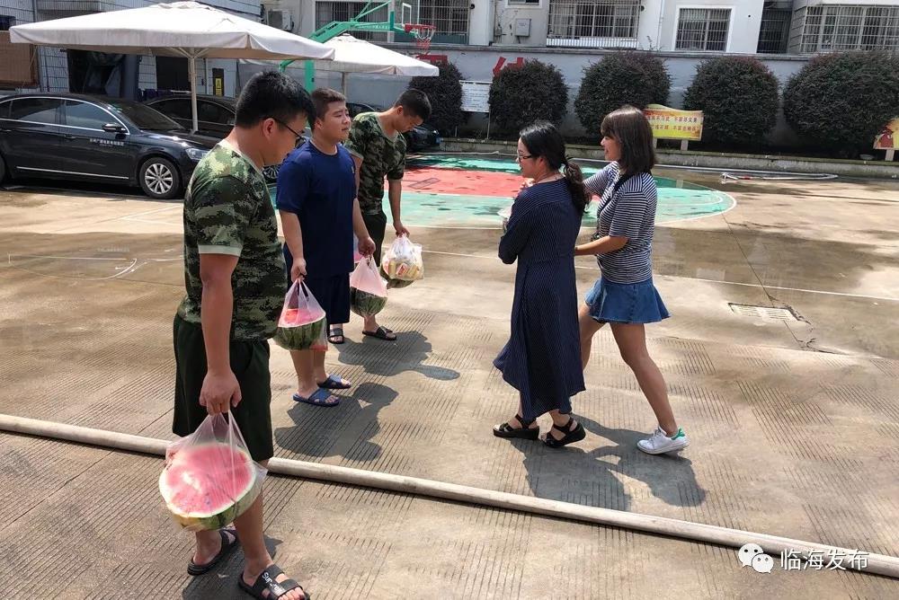 8月18日,古城消防中队大门口来了几名送西瓜的群众,但这一次被“眼疾手快”的消防员发现并拍下了照片。