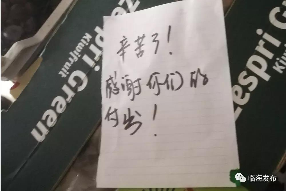 8月16日,杜桥中队大门口突然多了一袋饮料,饮料里有一张便利贴。上面有这样几行娟秀的字:“中队能不能送一个男朋友?哈哈,开玩笑。好好保护自己,每次都能安全归来。你们是最可爱的。