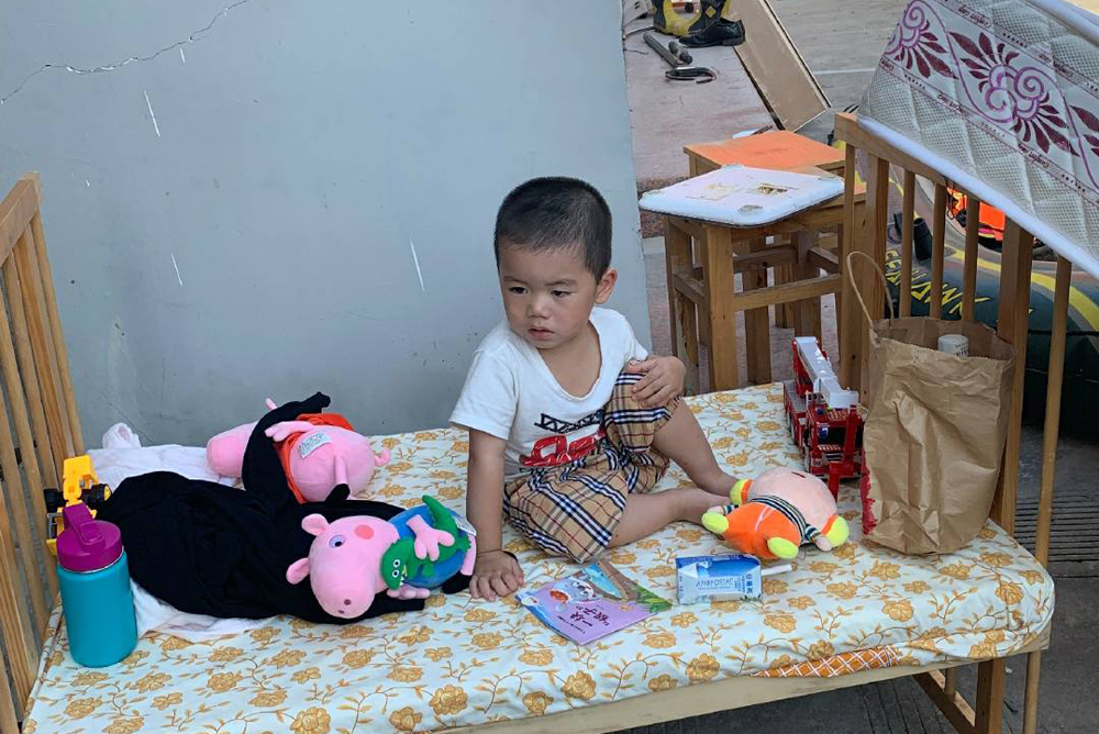 洪水退去,妻子忙着整理被洪水淹过的家。作为一个弱女子,她带着年幼的孩子,咬着牙将淹水家具一件件搬到阳光下晾晒,硬是扛起家中一片天,免除了王焕勇的后顾之忧。