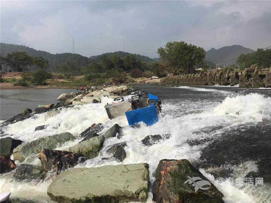 8月22日下午,家住台州临海永丰镇的许岙村的姜老伯差点为了抄近道走亲访友付出生命的代价。   当天下午3点多钟,姜老伯开着自己的电动三轮车,载着妻子从家里出发到临海永丰镇方前村看望亲戚。   姜老伯就抄了近道,直接把车驶上了董岸大坝的便道,这样可以少走3公里路,又可以避开交警在国道上查电瓶三轮车违法载人。   董岸大坝的便道全长一百多米,3点30分许,车子刚开上大坝,姜老伯就觉得有些不对劲:越往前开,大坝下的河水越急,快开到中间时,河水已经没上了车轮。   进退两难间,姜老伯有点惊慌,决定加大油门冲过去。可当冲到大坝中央的时候,水流更大了,车轮一个打滑,方向已把持不住了,瞬间,电动三轮车连人带车被冲下大坝,掉进了河道里翻车了,自己和妻子都被淹水里,随时都有被水流冲走的危险。自己的右大腿被乱石块敲断的骨头,动弹不得。妻子赶忙大声呼喊“救命!”正在附近干活的吴师傅听到呼喊声后,赶紧叫来村民过来帮忙救人。村民报了警并叫120救护车。 接到报警求助后,临海永丰交警中队出警人员火速赶到了现场。现场电动三轮车侧翻在河水里,姜老伯及妻子已被村民从车内救了出来,由于姜老伯腿部受伤严重不能动弹,村民只好把他搬到大石块上等待救援。由于大坝下到处是乱石头,且又湿滑,没有担架无法开展施救。120救护车到达现场后,经过一个小时艰难的救援,村民与永丰交警一起接力将受伤的姜老伯抬上救护车。在救援中村民吴师傅的大腿被乱石块划伤,血流不止,120急救医生对其进行简单包扎后,要求吴师傅去医院检查一下,吴师傅拒绝了,说一点小伤没事;交警小赵在救援中手机泡了水。 大坝管理员吴师傅说,大坝的便道一直处于关闭状态,大坝的东西两个方向都设置了警示牌,并用钢管拦着。在事发前,自己在看到老伯从对岸驾驶过来,不停的挥手与叫喊,还是无济于事,结果车子开到一半就被水冲下便道外的水里。