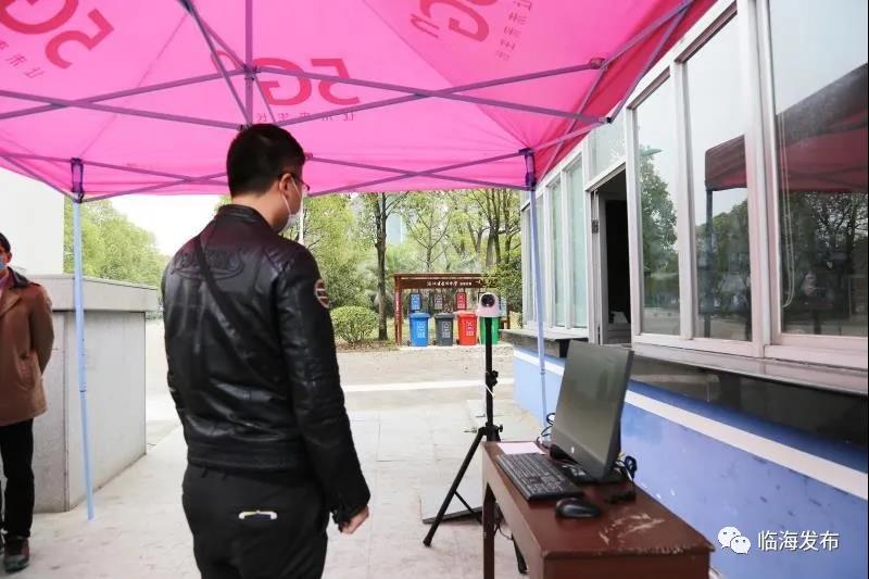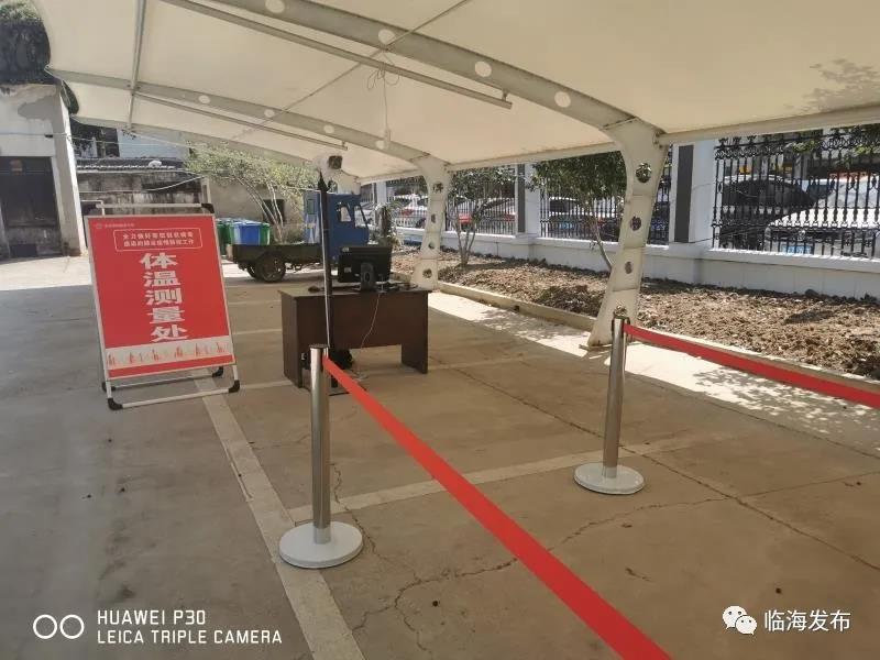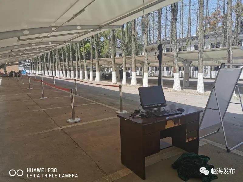 3月19日上午,台州中学校园一如寒假时期的宁静。校园的东、西大门都紧闭着,阿布从南大门进入,需通过一个粉红色的帐篷,帐篷下安装着一套红外热成像测温仪。面对着仪器的摄像头,一旁的显示屏上便清晰地显示出阿布此时的准确体温,一旦体温超过监测值,检测仪即刻报警。台州中学副校长胡正钼告诉阿布,学校在各个校门口都配备了一台红外热成像测温仪,是为了正式开学后师生进校测温准备的。这些仪器可同时测量多个进出者的体温,准确度高,测温效率高,可缩短师生通行时间,有效缓解人员扎堆现象。