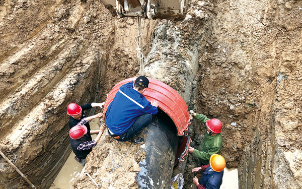 “该管线为牛头山水库通往东城水厂的唯一一条原水输送管道,管径1.2米,这也是该条原水管线2008年投入使用后,首次出现漏损。”市水务集团总经理杨晓强表示,“东城水厂是目前临海市区主要供水厂,日均供水量10万吨。接到消息后,我们迅速组织人员赶赴现场查看,发现受桩机施工影响,现场管线破损位置、漏损程度难以确定,现场抢修人员紧急制定3套抢修方案,并连夜从外省调运抢修所需管材、配件,调集施工人员做好抢修准备,同时通过短信、微信公众号等方式及时发布停水通知,努力将停水对市民生活的影响降到最低。”