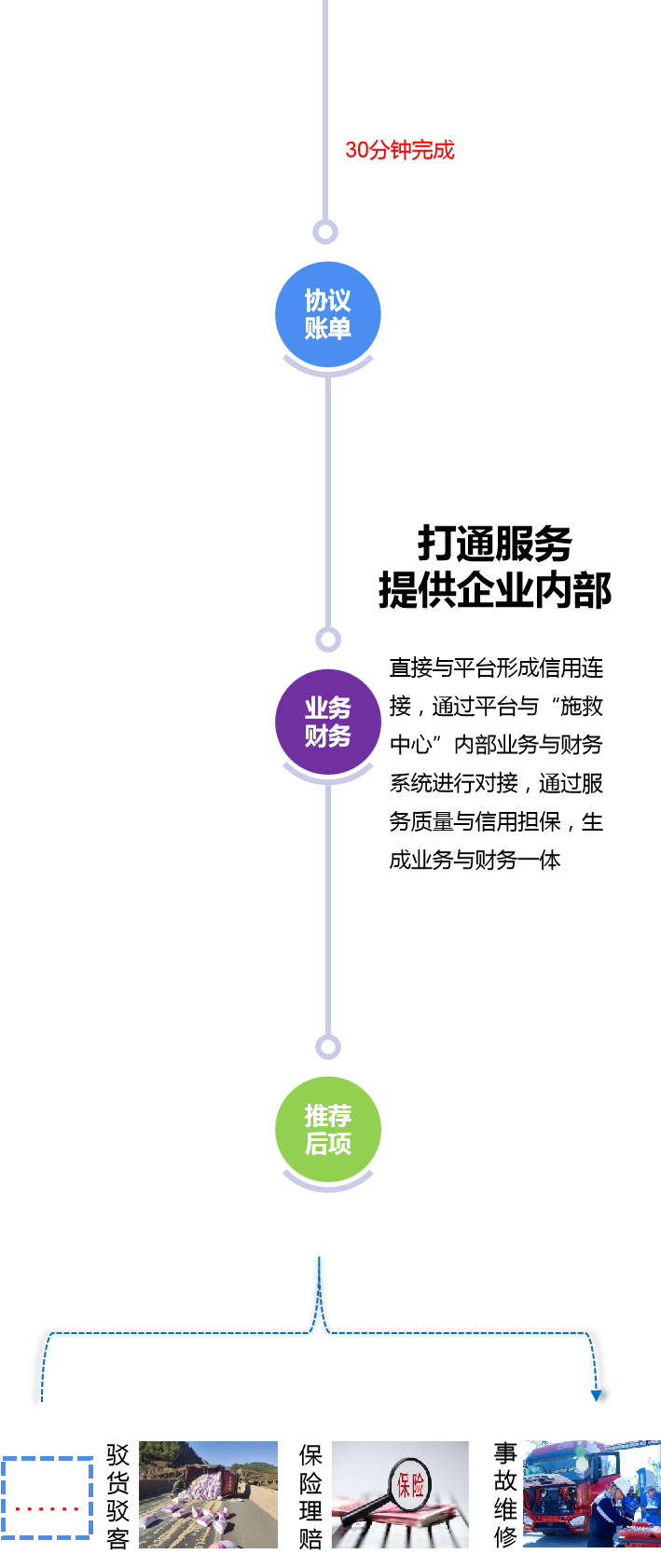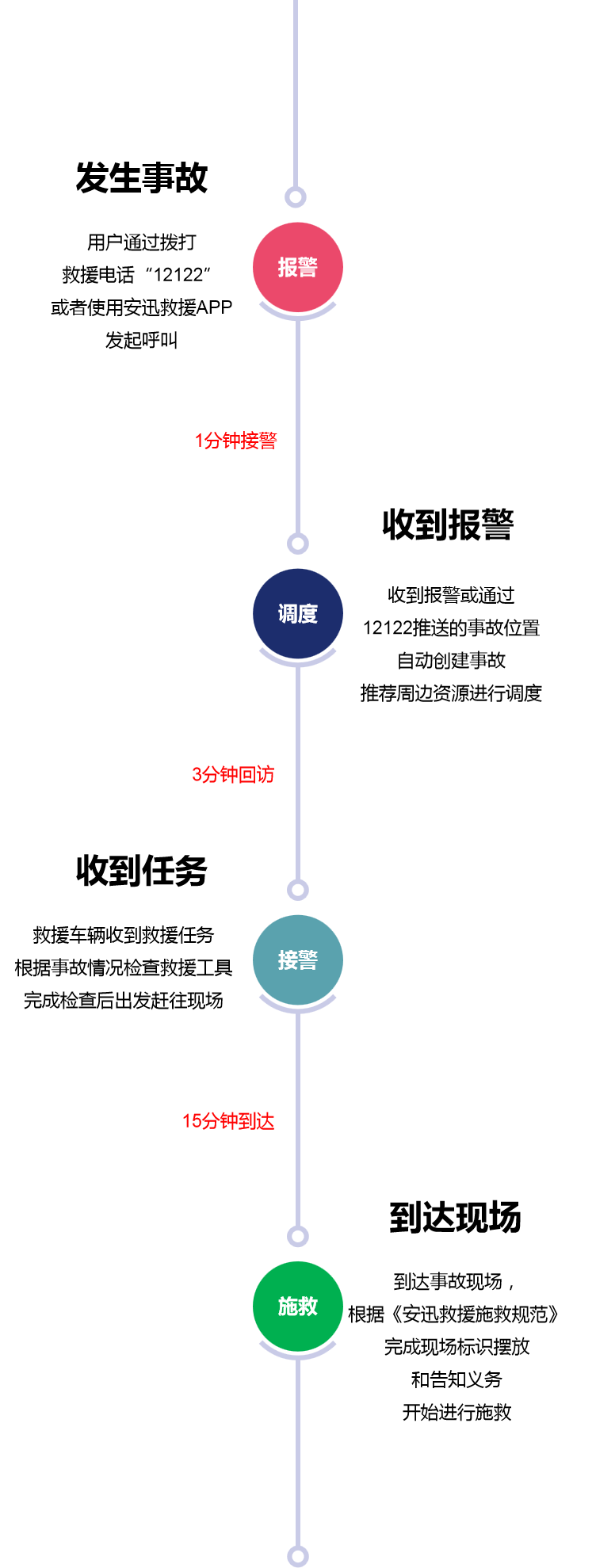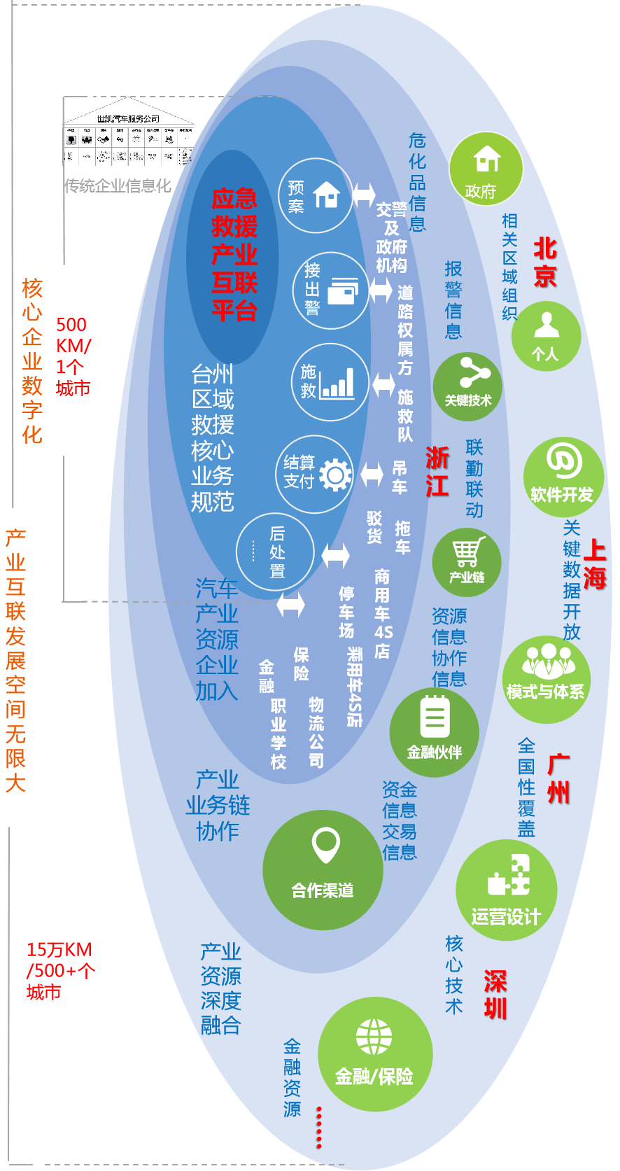 安迅科技公司,立足产业,深入将资源聚集、事前事中监管、事故接处警、救援、清障、后处理等产业链环节打通,为政府部门、运输企业和司乘人员提供全面、专业和满意的服务,创造产业链数字的流动,提供增值服务,从而实现自身的价值,并实现新等我长期可持续发展等模式。