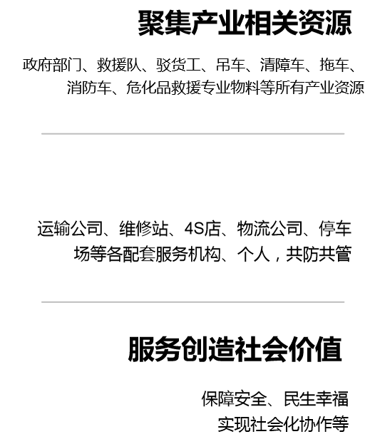 安迅应急救援运营与服务模式并不是凭空而来的所谓“互联网模式”,而是基于传统道路运输车辆产业链的专业,将这个专业体系同互联网深度融合,形成的应急救援暨道路运输产业互联网模式。具有极强的创新性、领先性和门槛性!