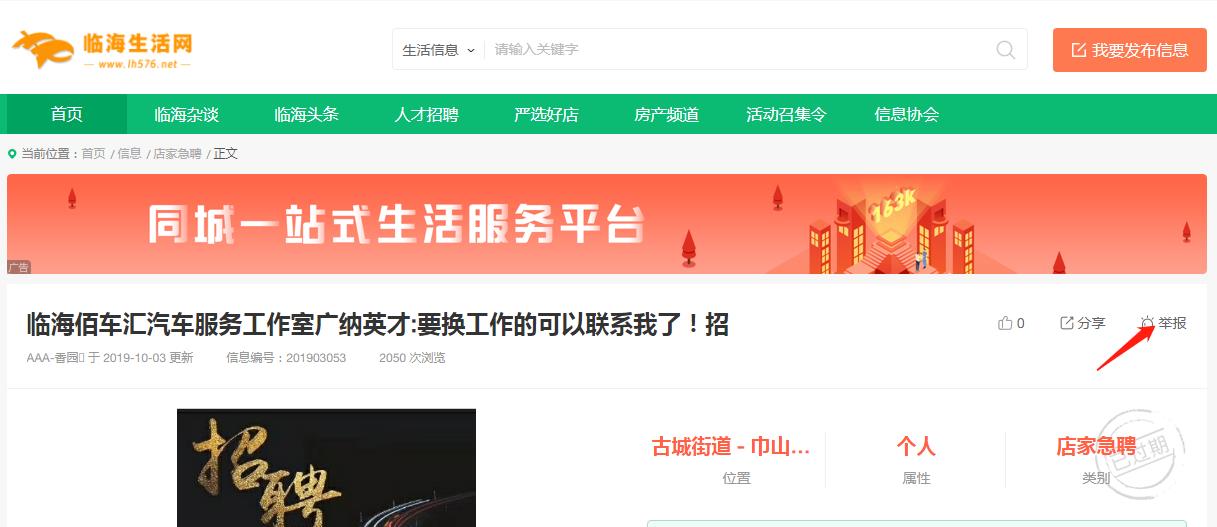 临海生活网始终致力于与各界共同打造清朗的网络生态环境,营造安全、健康、绿色的网络空间。同时也欢迎广大用户积极参与到网络综合治理中来,如发现相关违规线索,可在临海生活网进行举报,平台将第一时间跟进处理。