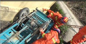 临海:电动三轮车翻下排水沟消防紧急救援伤者 4月9日13时许,临海消防大队接到报警称:临海山水一品小区附近,有一辆电动三轮车翻下排水沟