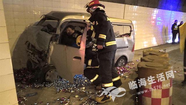 3月20日早上6点,临海消防大队接到报警称,台金高速临海古城出口往黄岩方向有一面包车发生事故,司机卡在驾驶座里,请求救助。接到报警后,临海消防大队立即出动1车7