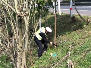 见过交警站岗执勤,疏通路面堵点,抢救事故受人员.....但很少有人见过交警在砍树吧!今天笔者就带你们去看看这些砍树的交警。 3月22日上午,临海永丰