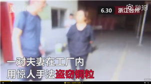 在浙江台州,一对在铜产品加工厂工作的夫妻,持续偷盗铜粒一年,终被警方抓获。 在现场,民警从男子张某身上搜出30公斤铜,从女子罗某身上搜出37公斤铜,