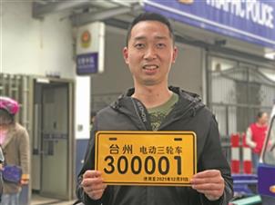 图为市民董杰拿到全市首张电动三轮车备案登记牌。谢希摄 5月6日,我市全面启动电动三轮车备案登记工作。当天上午,市交警大队大洋中队发出了全市首
