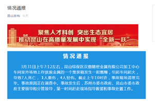 3月31日上午7:12左右,昆山综保区汉鼎精密金属有限公司加工中心车间室外场地上存放废金属的一个集装箱发生一起燃爆,引起车间起火,导致7人死亡,1人重伤,4人轻