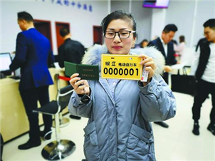昨日上午10时,我市首块新版电动自行车牌照,在市公安局交通警察局车辆管理所非机动车注册登记处发放。在椒江上班的路桥姑娘林智率先拿到了这块编号为“0000001”