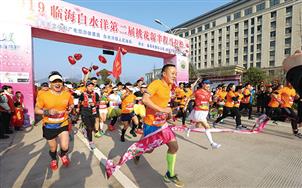 发令枪响,参赛者向着桃花盛开的方向进发。 春日融融,绿意初生。3月的白水洋镇桃花十里延绵,2019临海白水洋第二届桃花源半程马拉松比赛紧随春的脚步如