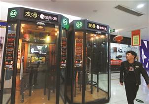 昨日,在市区一家商超大楼,市民从无人KTV旁走过。 近日,上海的一家“无人面馆”因“涉嫌超范围经营”被叫停,一时间将“无人”概念推向风口浪尖。虽然“