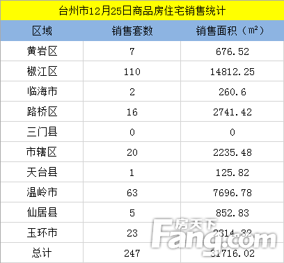 头条推荐【数说台州房产】12月25日房天下台州楼市日报:台州247套成交