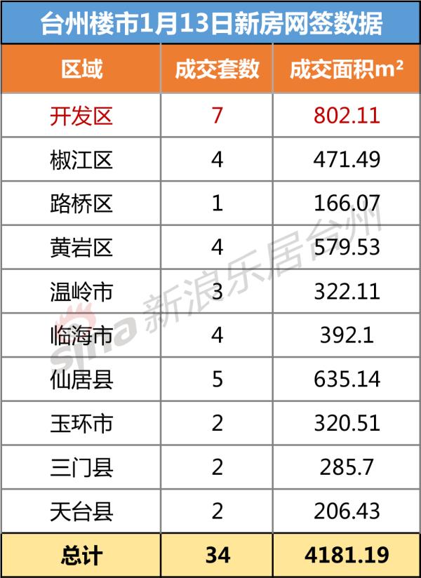 头条推荐台州楼市1月13日一手商品房网签数据