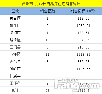 头条推荐【数说台州房产】1月12日房天下台州楼市日报:台州58套成交