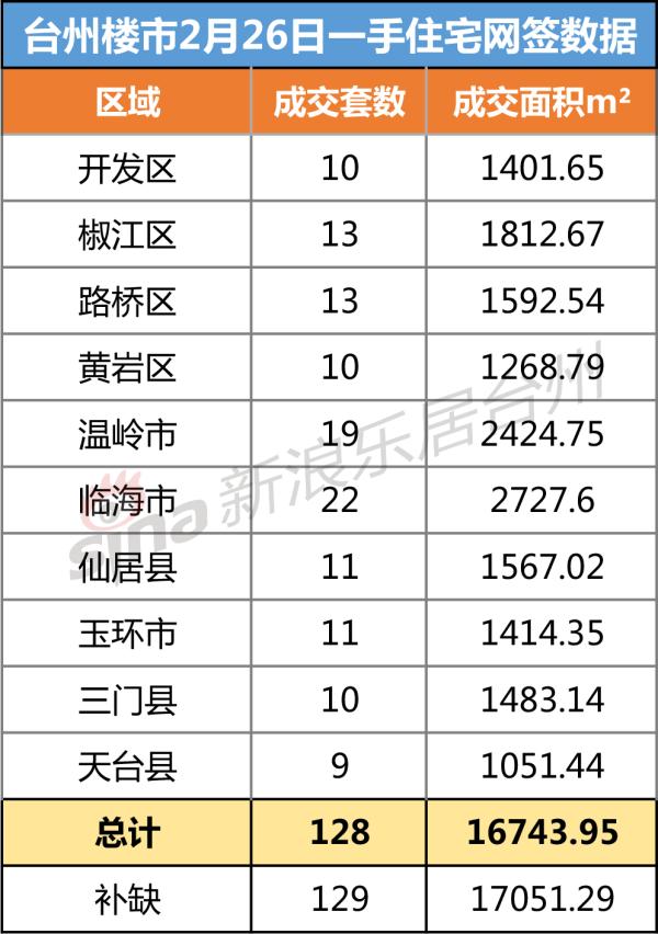头条推荐台州楼市2月26日一手住宅网签数据